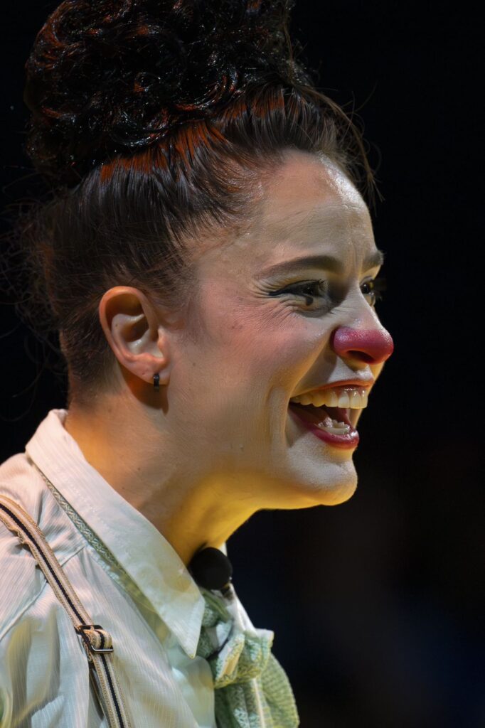 Geisa Helena – a palhaça Chiquita da Trupe Koskowisck apresenta o número “Pano pra Manga” no SESC Mogi pelo Festival Diversa.