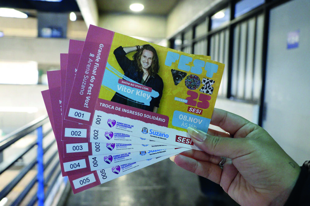 Ao todo, quatro mil ingressos estão disponíveis e podem ser adquiridos até o dia do evento. As trocas estão sendo realizadas na sede do Fundo Social de Solidariedade (rua Baruel, 501, sala 224, 2º andar, Centro) e na Secretaria Municipal de Educação (avenida Paulo Portela, 210, Jardim Paulista), além de diversas escolas municipais. A lista completa das unidades participantes pode ser consultada no site da prefeitura (suzano.sp.gov.br/educacao/escolas-municipais).