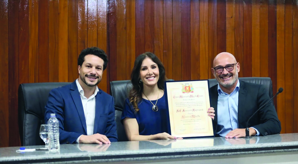 Em sessão solene no dia 19, a Câmara de Mogi outorgou o Título de “Honra ao Mérito” à RC Assessoria Empresarial pelos seus 50 anos de história e responsabilidade social. Na foto, os diretores Maicon Souza, Tatiana Souza e José Antônio Júnior celebram o legado do fundador Renato Baptista. Parabéns a todo o time pelo merecido reconhecimento!