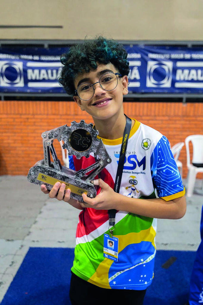 João Pedro Silva Mattos, de 11 anos, se encantou pela robótica ainda pequeno, acompanhando o pai nas competições. Desde os seis anos, participa de torneios presenciais e virtuais, integrando a equipe RSM Robótica. Entre seus principais títulos estão o primeiro lugar no Iron Cup 2023, Salão da Robótica, Summit, RCX 2025, Robô Challenger na categoria Júnior em 2025, e Cyber Ajuda 2025 em uma categoria e segundo lugar em outra. Prestes a representar Mogi das Cruzes no Campeonato Mundial de Robótica, em Tóquio, João Pedro diz com brilho nos olhos: “Para mim, é diversão.” Sobre inspirar outras crianças, destaca: “Quando o aluno recebe apoio individual, passa a se interessar pela matéria e o aprendizado acontece de maneira mais natural.” E em relação ao futuro, revela que seu sonho é trabalhar profissionalmente com robótica, transformando sua paixão em carreira.